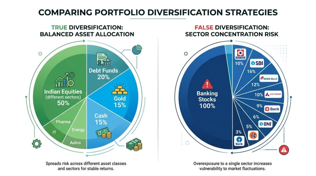 A truly diversified Indian equity portfolio might include exposure to IT (driven by global tech demand and USD), FMCG (driven by domestic consumption), pharma (driven by healthcare demand and exports), infrastructure (driven by government spending), and commodities (driven by global prices).